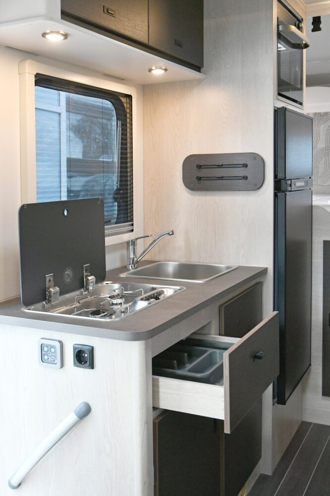 To pięcioosobowy, pojemny kamper, stworzony z myślą o rodzinach. Doskonale sprawdzi się zarówno podczas krótkich weekendowych wypadów, jak i długich, wakacyjnych podróży – zawsze zapewniając komfort, funkcjonalność i swobodę podróżowania.