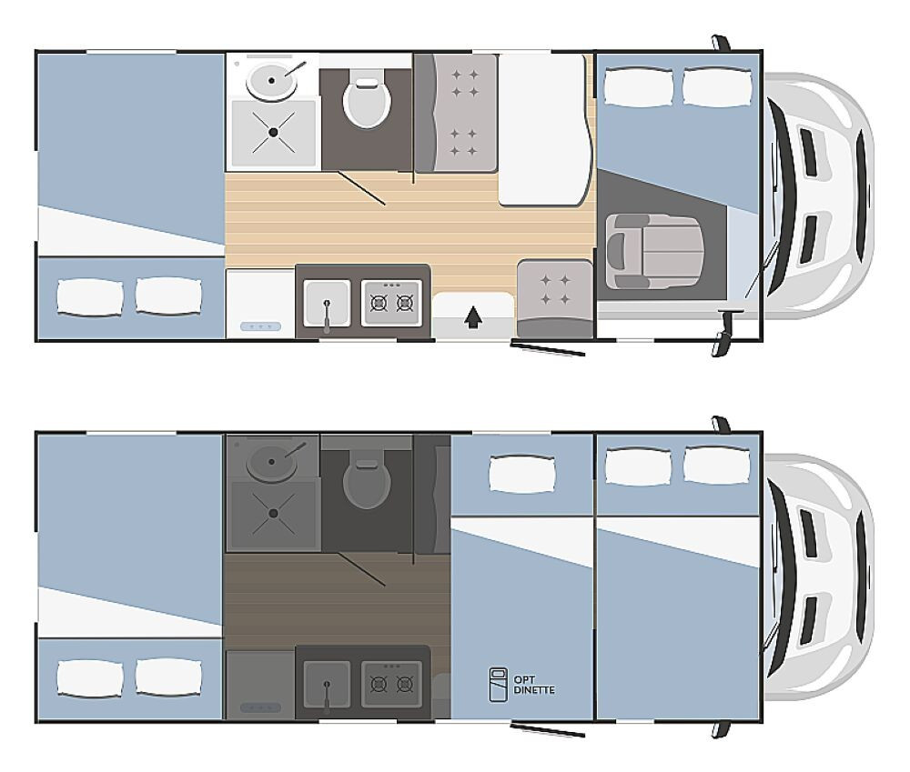 EKOS 8 to jeden z najpopularniejszych układów spotykanych w kamperach z alkową. Nie bez powodu znajdziecie go w ofercie niemal wszystkich producentów pojazdów kempingowych. Jego popularność wynika z idealnego połączenia przestrzeni, funkcjonalności i komfortu.